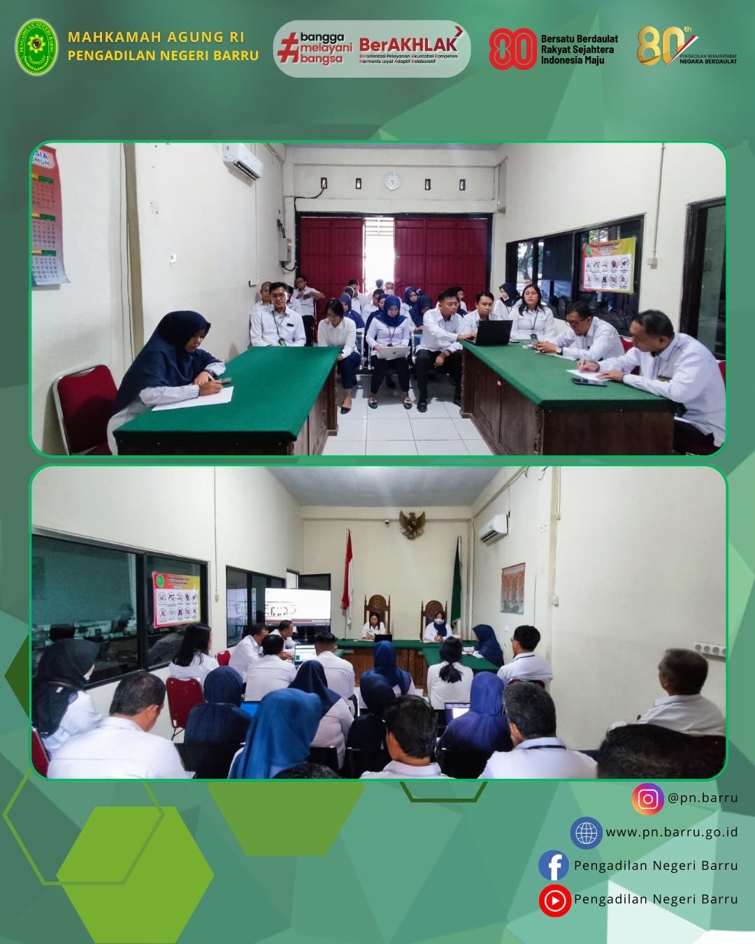 - Mengucapkan selamat kepada PPPK Pengadilan Negeri Barru yang dilantik dan diambil sumpah jabatannya serta mengingatkan agar terus bekerja dengan tulus, berintegritas, serta tetap bersyukur;