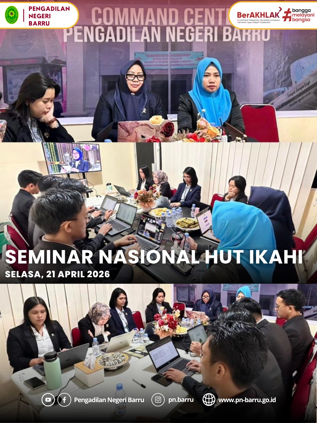 Pada hari Selasa, tanggal 21 April 2026, bertempat di Balairung Gedung Mahkamah Agung Republik Indonesia, Ikatan Hakim Indonesia (IKAHI) menyelenggarakan Seminar Nasional dalam rangka memperingati Hari Ulang Tahun (HUT) ke-73 IKAHI. Kegiatan ini diikuti oleh Pengurus Daerah IKAHI Khusus Mahkamah Agung RI, Pengurus Daerah IKAHI di seluruh Indonesia, Pengurus Cabang IKAHI, serta anggota IKAHI di seluruh Indonesia.