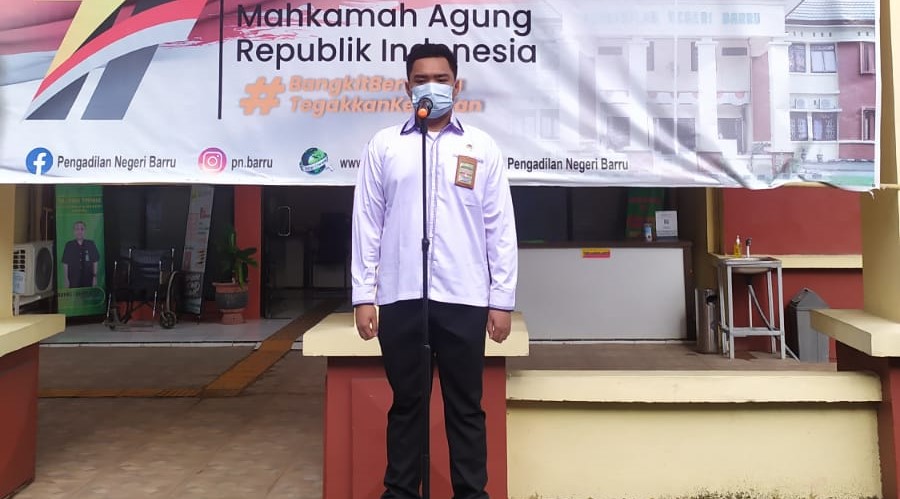 Kegiatan Apel Senin Pagi berjalan secara tertib dan lancar. Bertindak sebagai Pemimpin Apel adalah Bapak Suardi, S.H. (Jurusita Pengadilan Negeri Barru), selanjutnya yang bertindak sebagai MC adalah Bapak Ali Imran, S.H. (Staf Kepaniteraan Hukum), yang bertindak sebagai Pembaca Doa adalah Bapak Baharuddin, S.Ag (Staf Kepaniteraan Perdata), serta Pembacaan Maklumat diwakili oleh Bapak Ilham Anwar (Staf Perencanaan Teknologi Informasi dan Pelaporan).