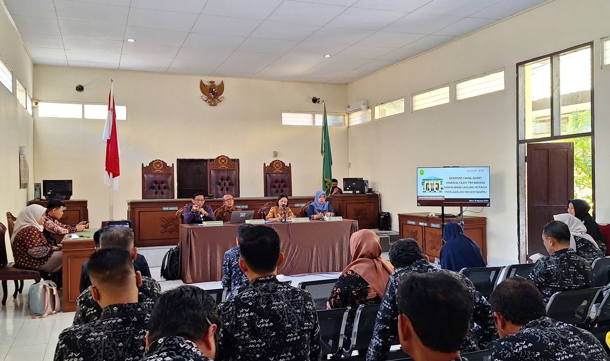 Pada hari Kamis, tanggal 05 September 2024, bertempat di Ruang Sidang Cakra Pengadilan Negeri Barru, segenap keluarga besar Pengadilan Negeri Barru mengikuti Rapat Monitoring dan Evaluasi Kinerja Periode Bulan Agustus 2024 dan Rapat Pembinaan September 2024. Rapat dibuka oleh Wakil Ketua Pengadilan Negeri Barru, Ibu Hj. Nur Afiah, S.H., M.H selaku pemimpin rapat. Dalam pembukaannya, beliau menyampaikan apresiasi atas kinerja Bapak/Ibu sehingga pencapaian Pengadilan Negeri Barru didalam EIS (Evaluasi Implementasi SIPP) di awal bulan September 2024 berada pada posisi yang dapat dibanggakan. Wakil Ketua Pengadilan Negeri Barru berpesan agar segenap Aparatur Pengadilan Negeri Barru untuk selalu berupaya meningkatkan kinerjanya.